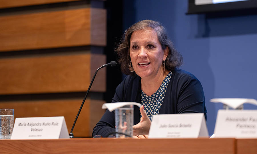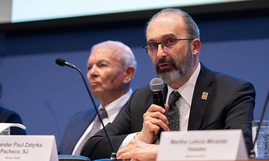 En la presentación estuvieron también Luis Enrique González, director del CUDJ; Alejandra Cartagena, académica de este mismo centro; Alejandra Nuño Ruiz Velasco, académica adscrita a la Rectoría del ITESO, y Alexander Zatyrka Pacheco, SJ, rector de esta casa de estudios.