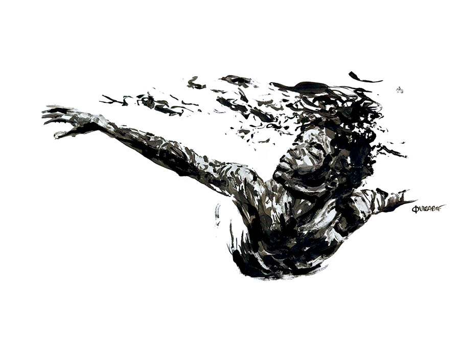 El retrato realizado con la técnica de acrílico sobre papel es parte de la serie Floating Strength, que explora una faceta alternativa a lo que tradicionalmente se conoce como masculinidad. El proyecto se divide en tres etapas: “Inmersión”, que representa la entrega del cuerpo, aventurarse al cuestionamiento de la identidad; “Suspensión”, un momento de quietud que abre paso a la reflexión, y “Emerger”, que es el resultado de este proceso a partir del cual “nunca vuelves a ser el mismo”, añade.